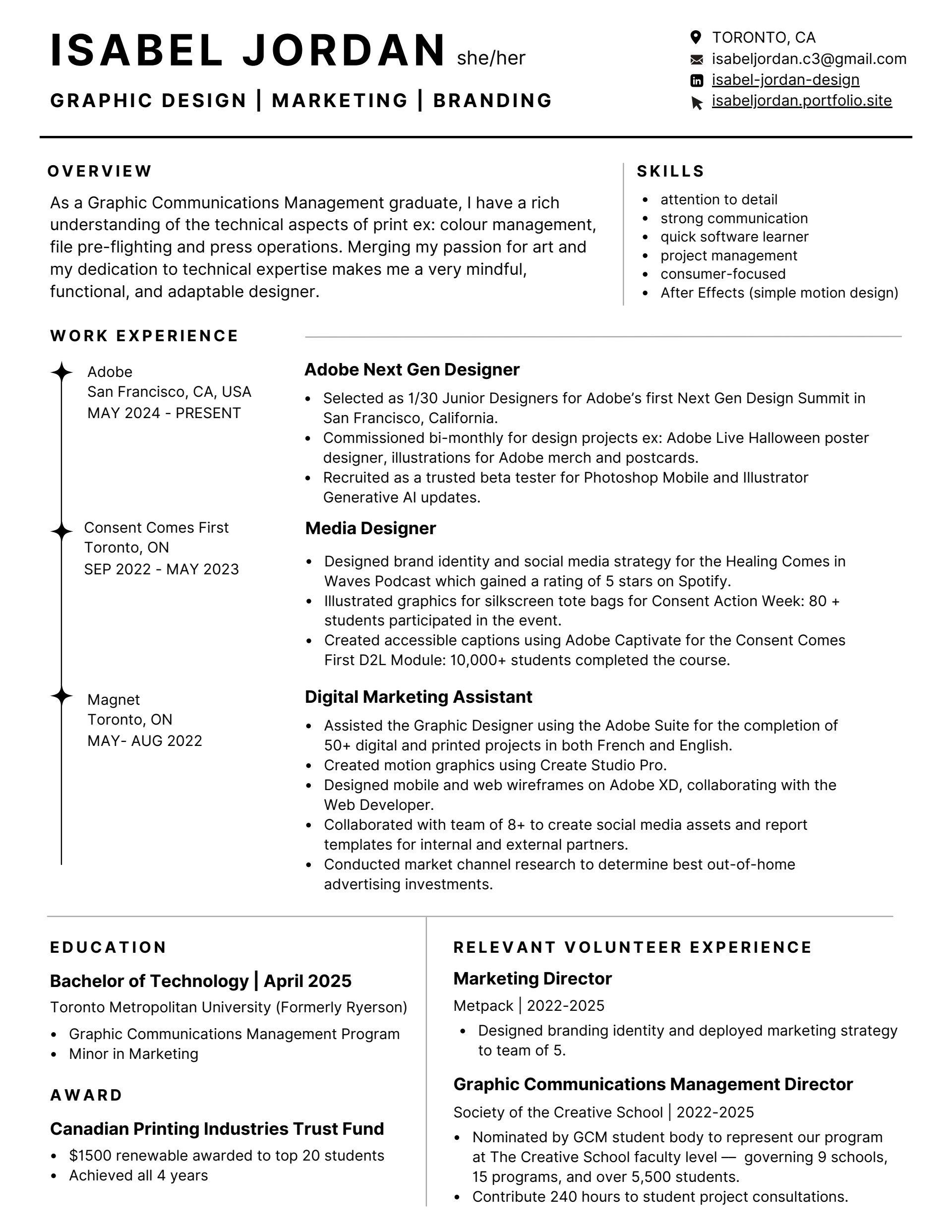 I have a Bachelor of Technology and a Minor in Marketing from Toronto Metropolitan University. Always looking for opportunities to challenge my digital tool kit!