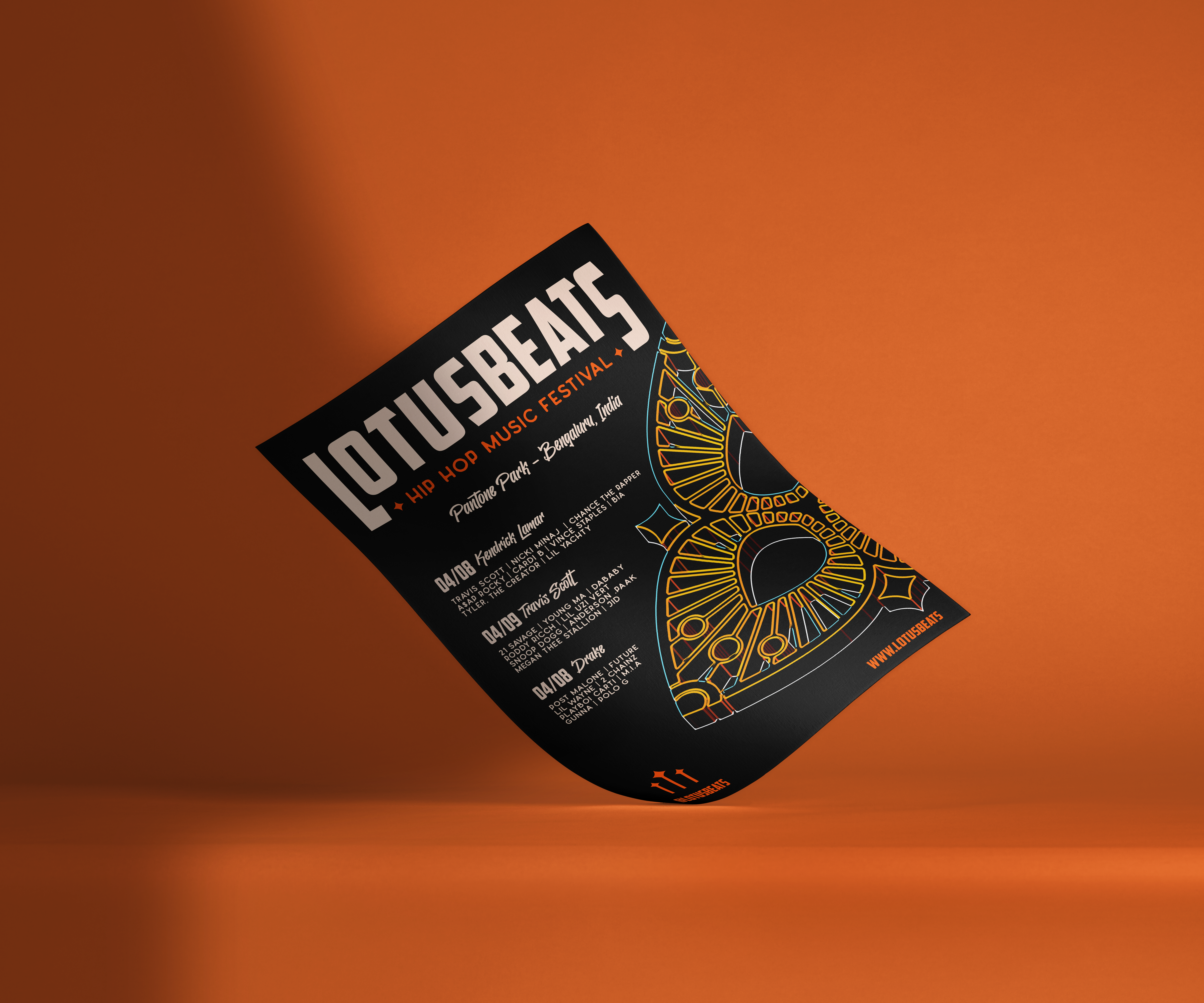Lotus Beats is a Hip Hop festival based in Bengaluru, India. The branding is inspired from Yakshagana patterns (a traditional folk dance popular in the site location).